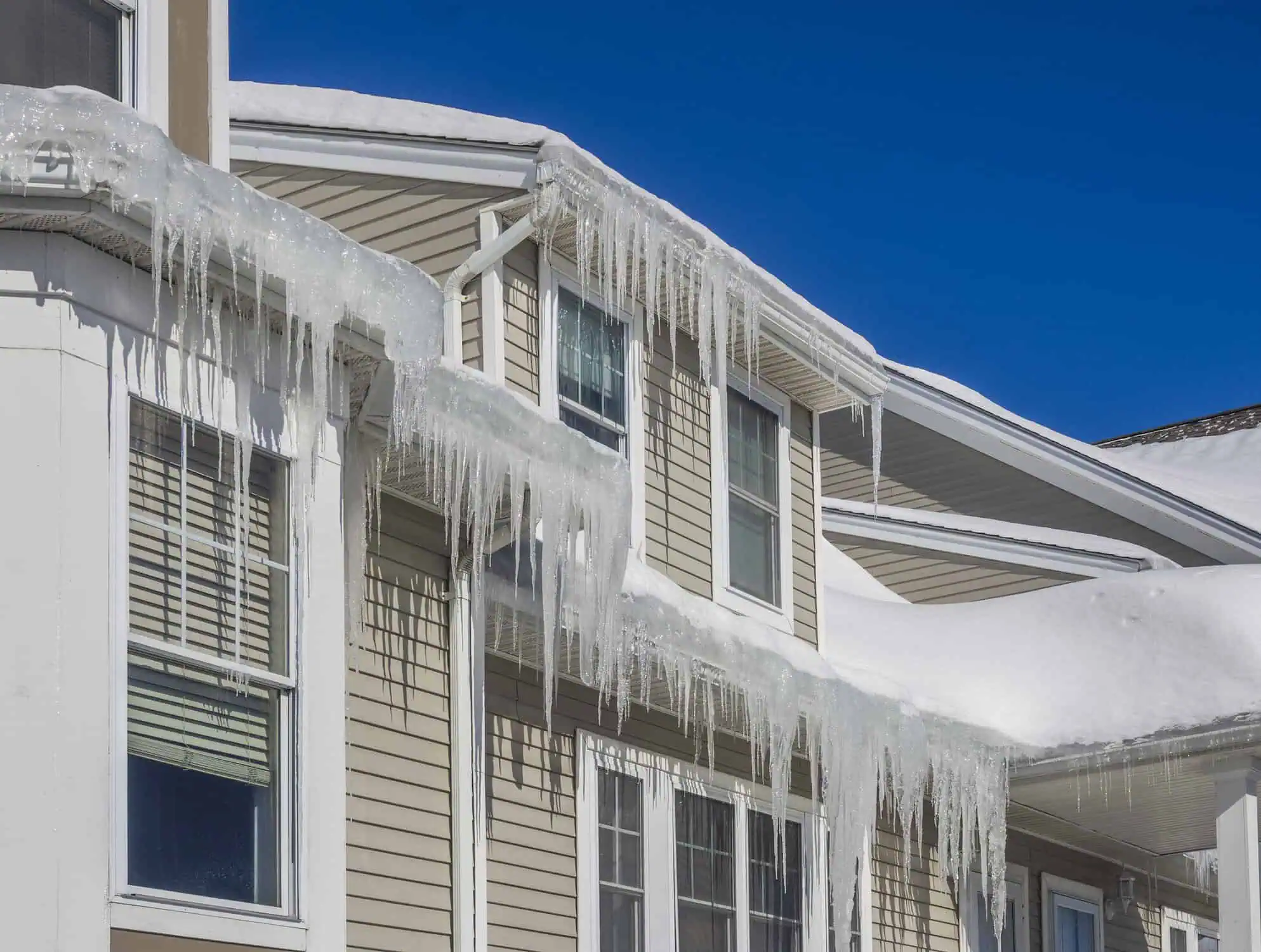 Icicles and frozen gutters can become heavy and cause damage. Keep them clear by: